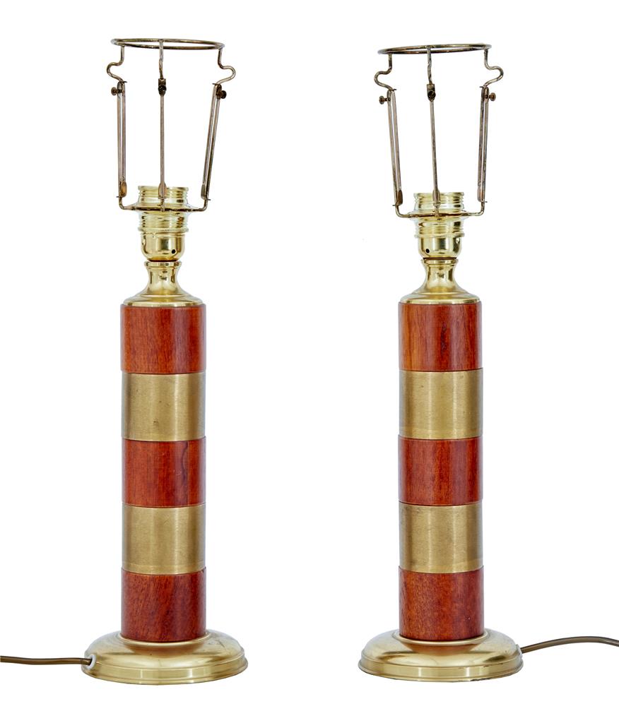 Pair of Brass & Teak 1950's Table Lamps (1 of 1)
