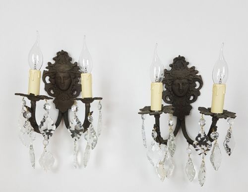 Pair of Brass Wall Lights with Classical Female Face c.1910