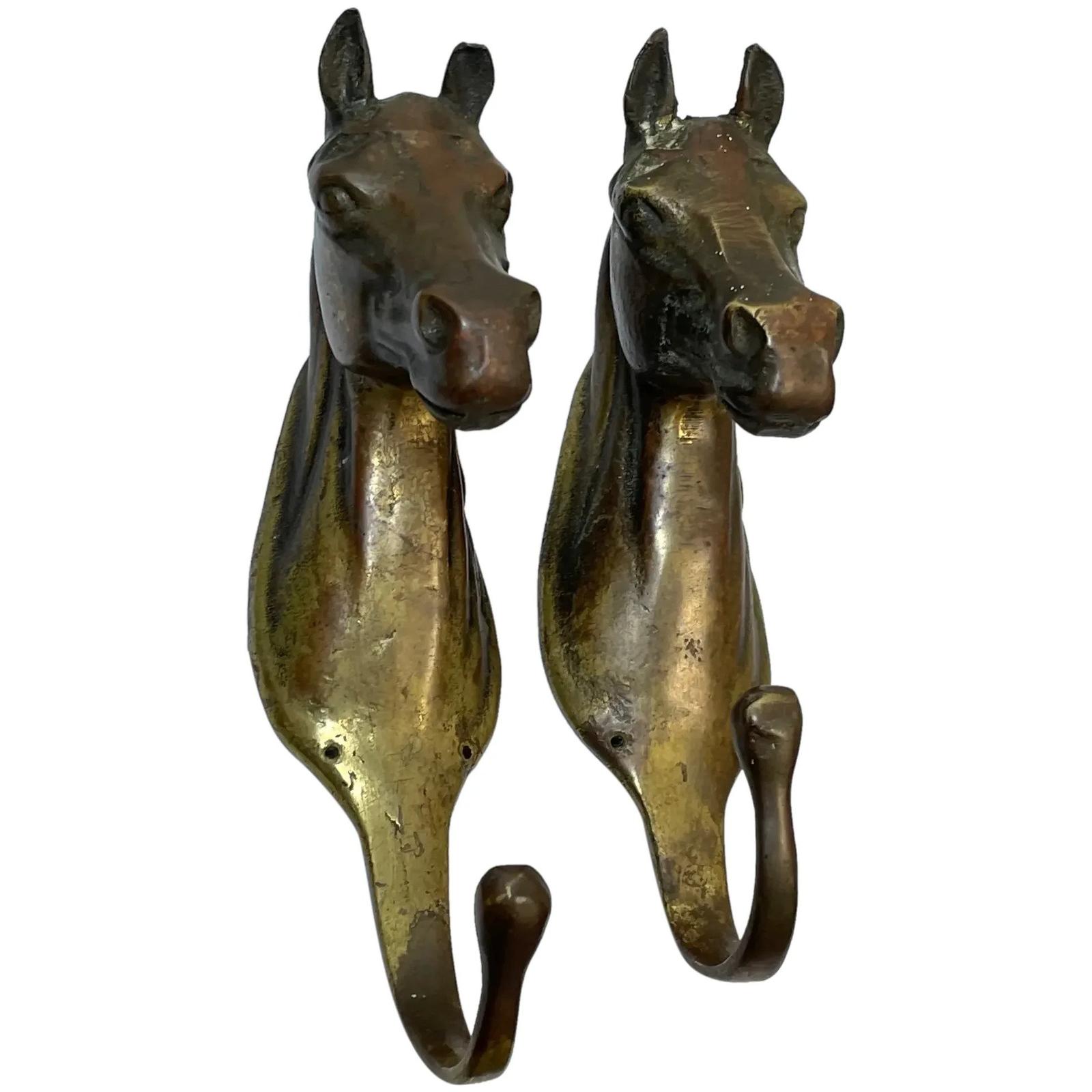 Pair of British 19th Century Bronze Equine Horse Head Busts His & Her Coat Hooks