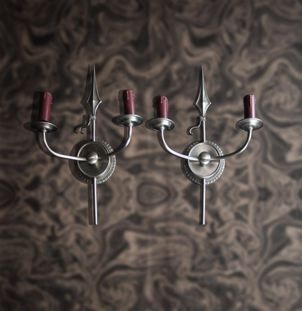 Pair of Brushed Chrome Directoire Style Wall Lights