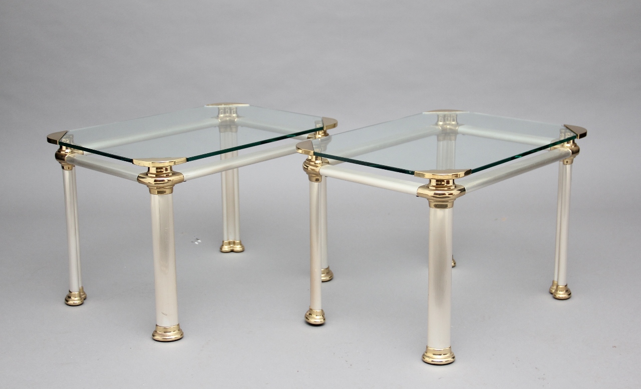 Pair of Brushed Steel, Brass & Glass Side Tables