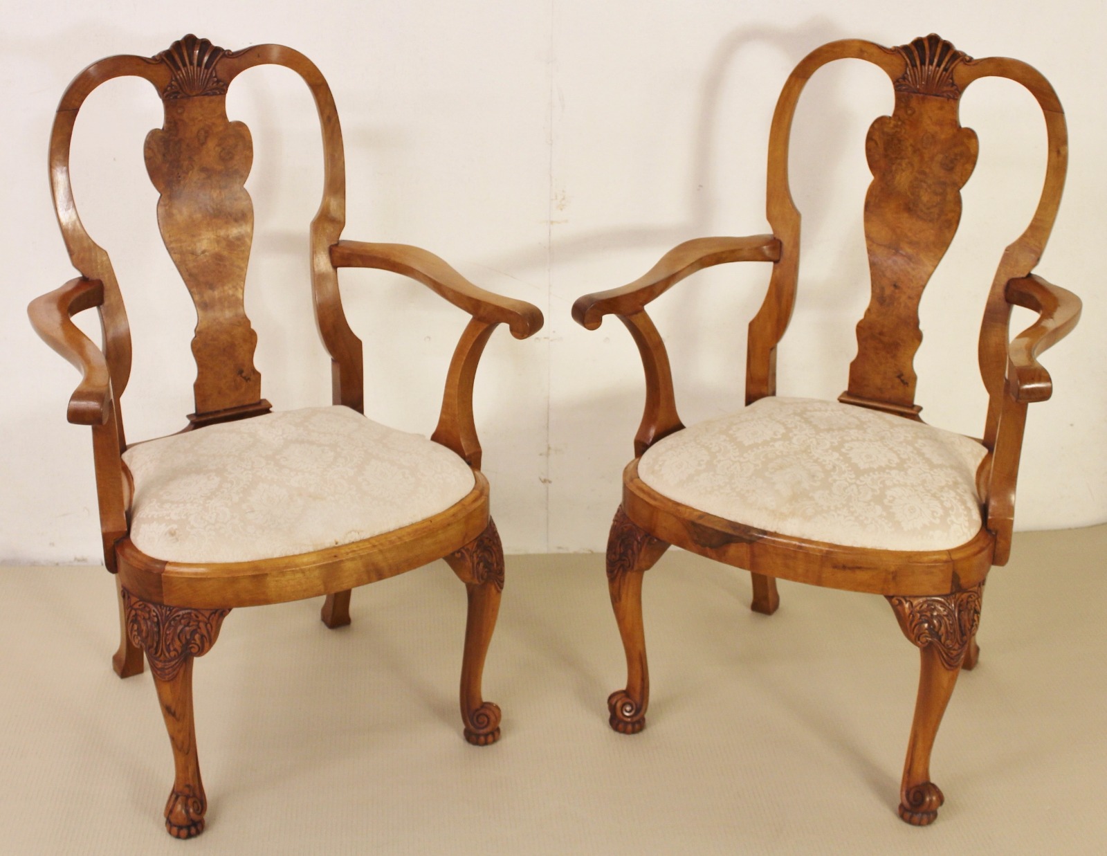 Pair of Burr Walnut Armchairs c.1910