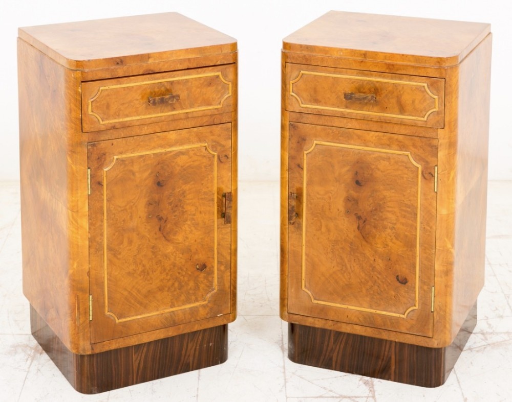 Pair of Burr Walnut Art Deco Bedside Cabinets