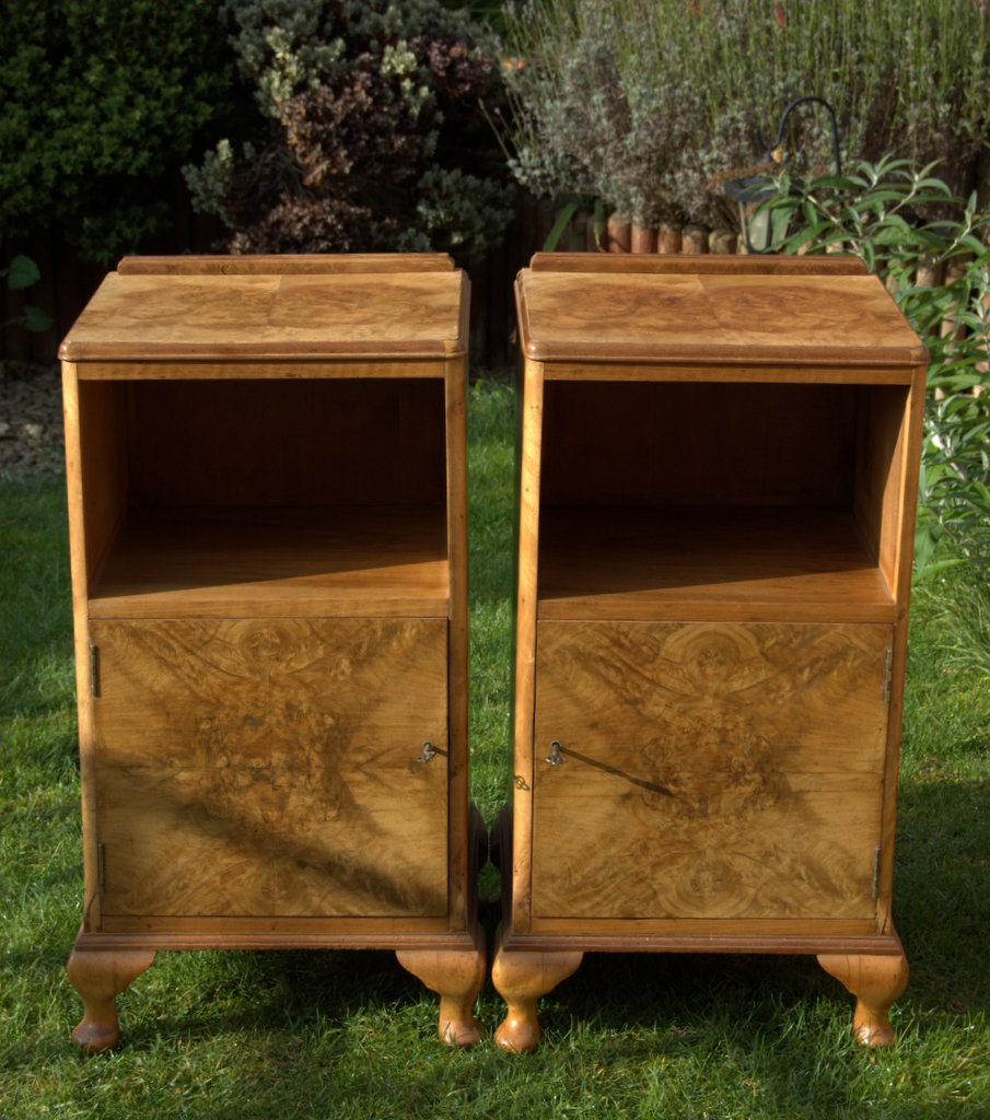 Pair of Burr Walnut Art Deco Bedside Cabinets (pick up from Bath or Guildford)