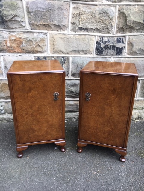 Pair of Burr Walnut Bedside Cabinets c.1920