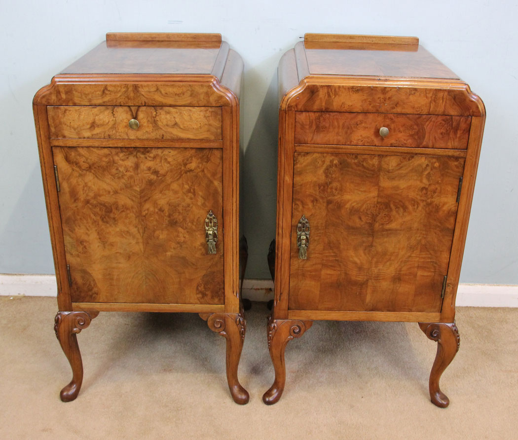 Pair of Burr Walnut Bedside Cabinets C.1920 (1 of 1)