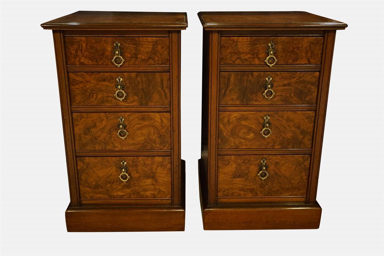 Pair of Burr Walnut Bedside Cabinets / Chests c.1880