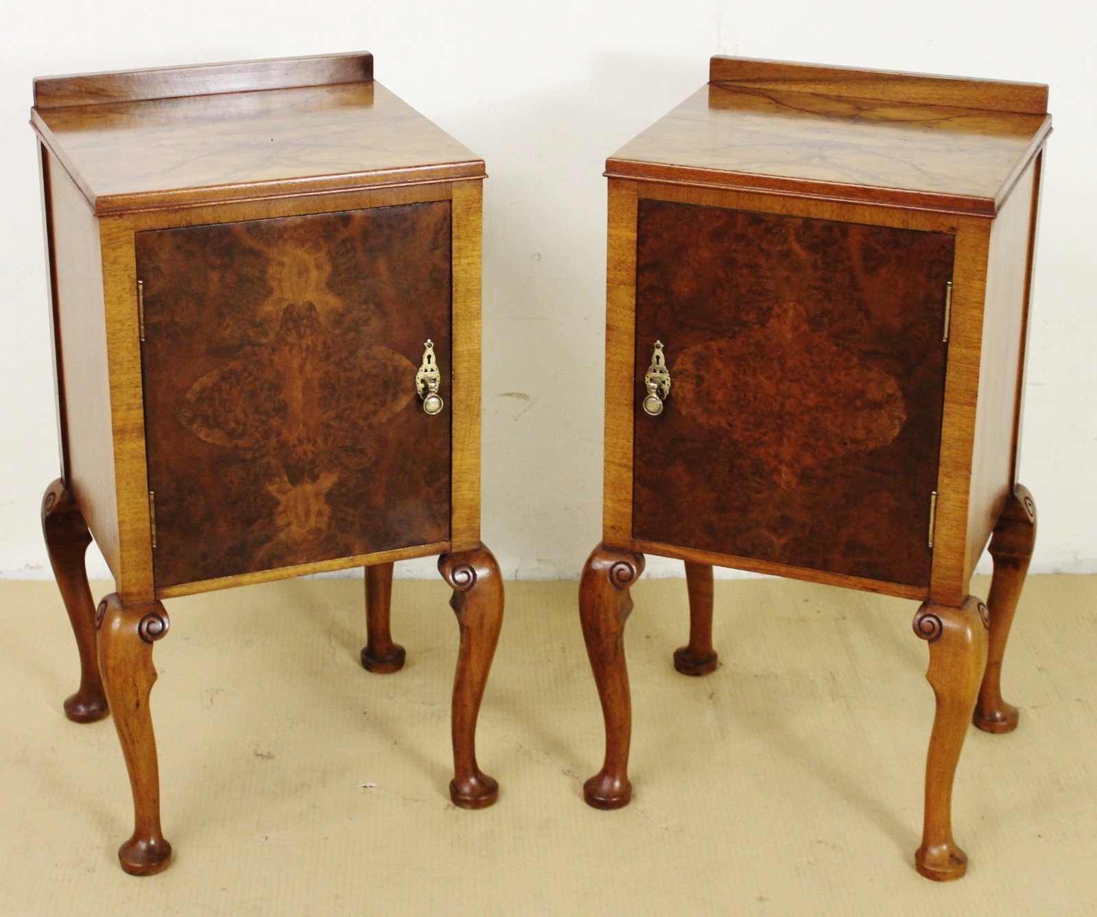 Pair of Burr Walnut Bedside Cupboards c.1920 (1 of 12)