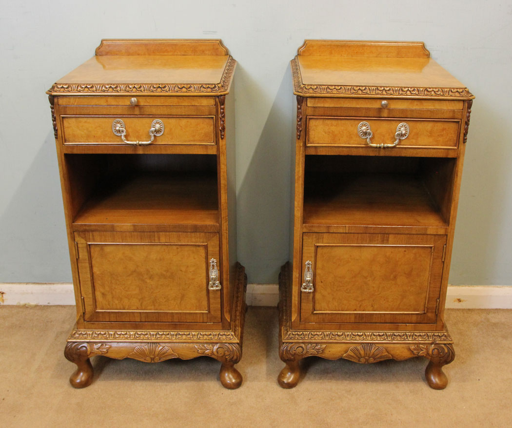 Pair of Burr Walnut Bedside Tables / Cabinets C.1930