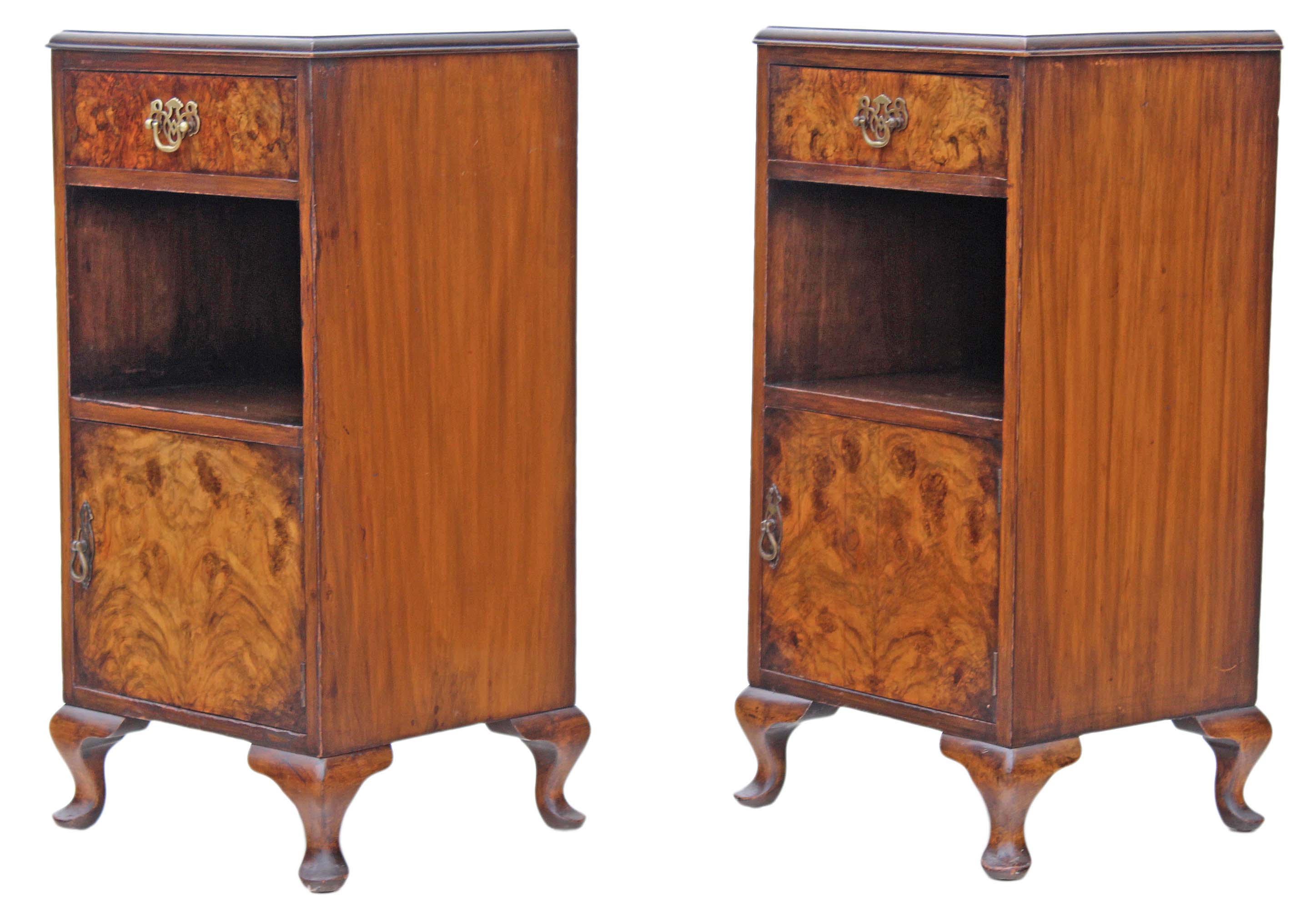 Pair of Burr Walnut Bedside Tables / Cupboards / Cabinets