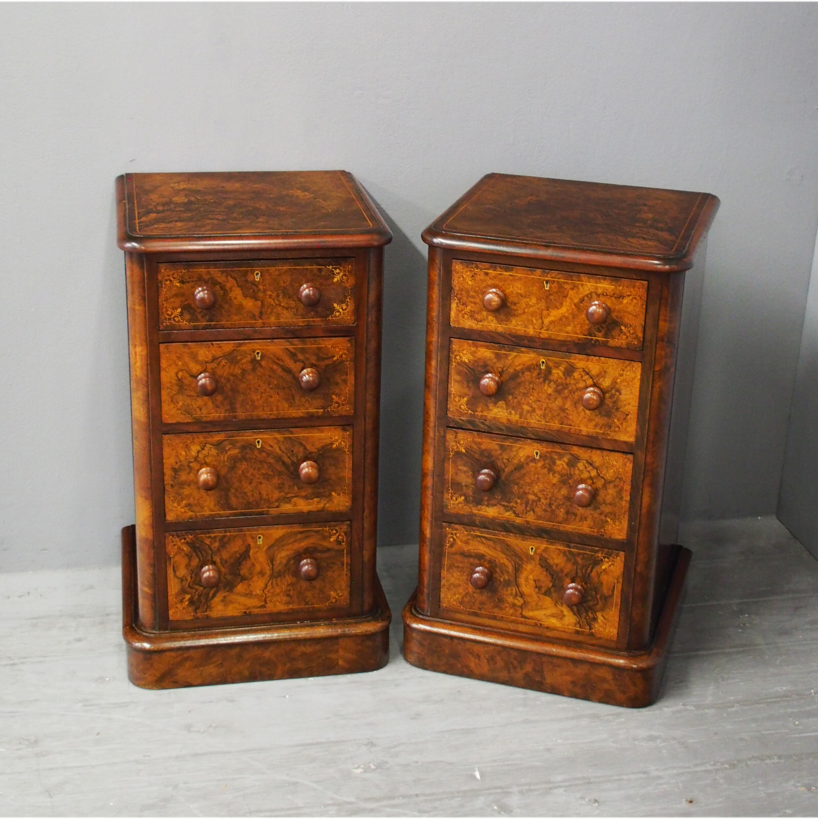 Pair of Burr Walnut Inlaid Bedside Lockers
