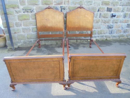 Pair of Burr Walnut Single Beds by Maple c.1920