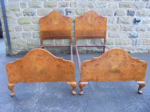 Pair of Burr Walnut Single Beds c.1920