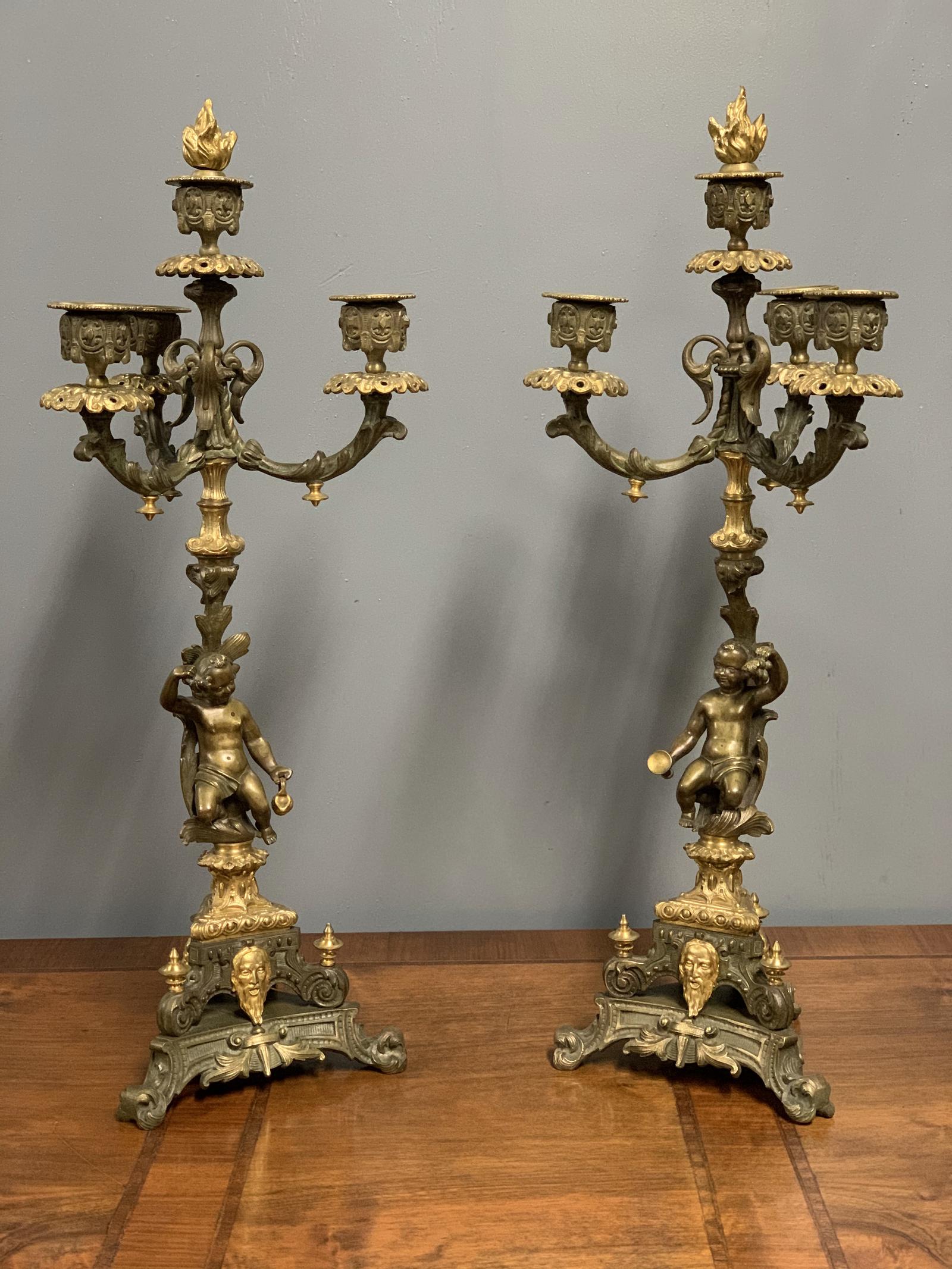 Pair of c19th French gilt bronze candelabra