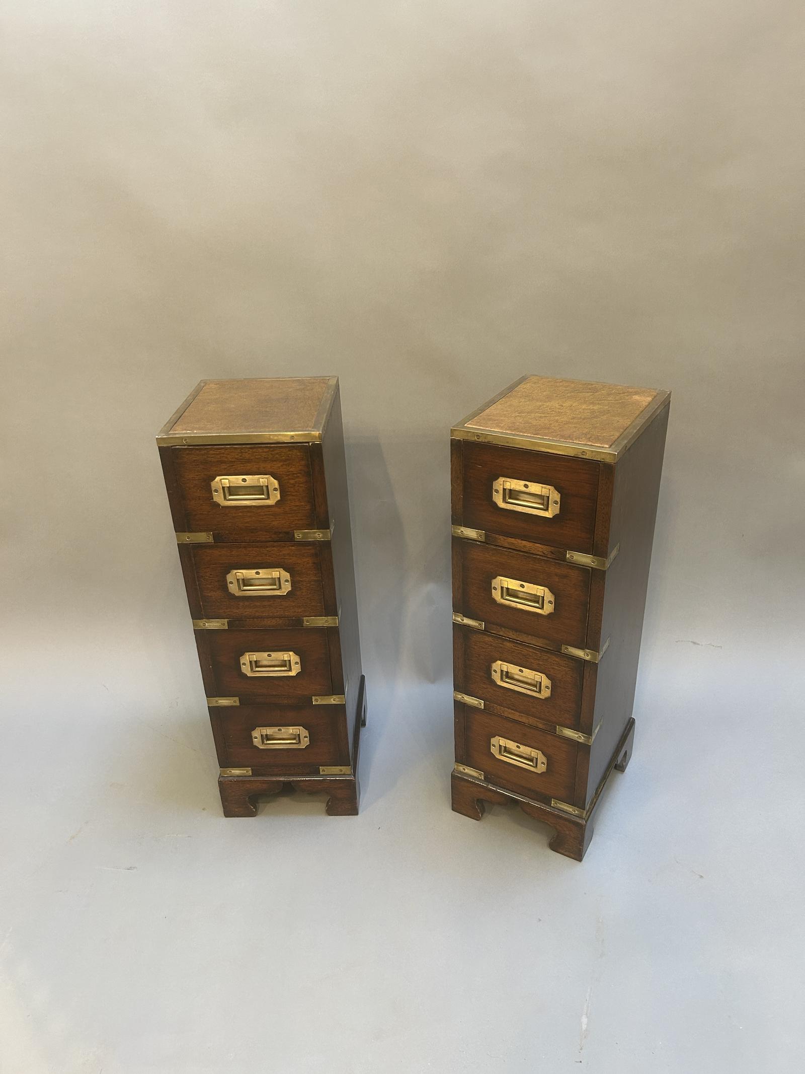 Pair of Campaign Bedside Chest of Drawers