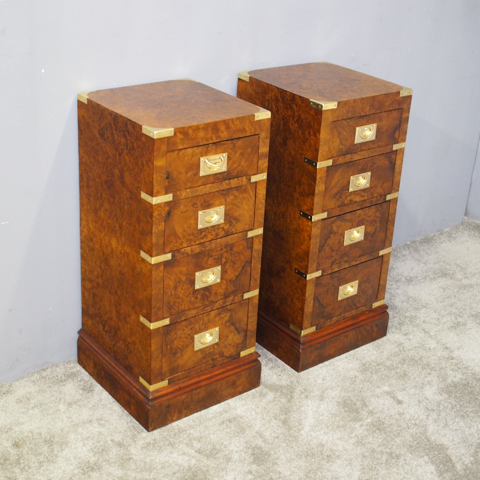 Pair of Campaign Style Burr Walnut Bedsides (1 of 1)
