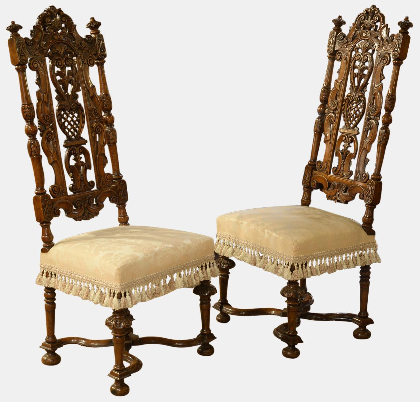 Pair of Caned Walnut High Back Chairs c.1890 (1 of 1)