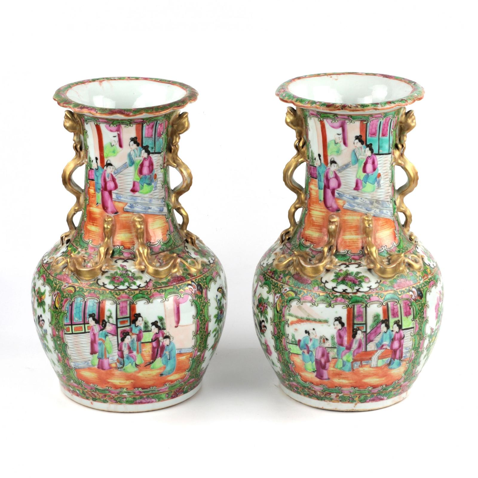 Pair of Cantonese Vases Family Rose.