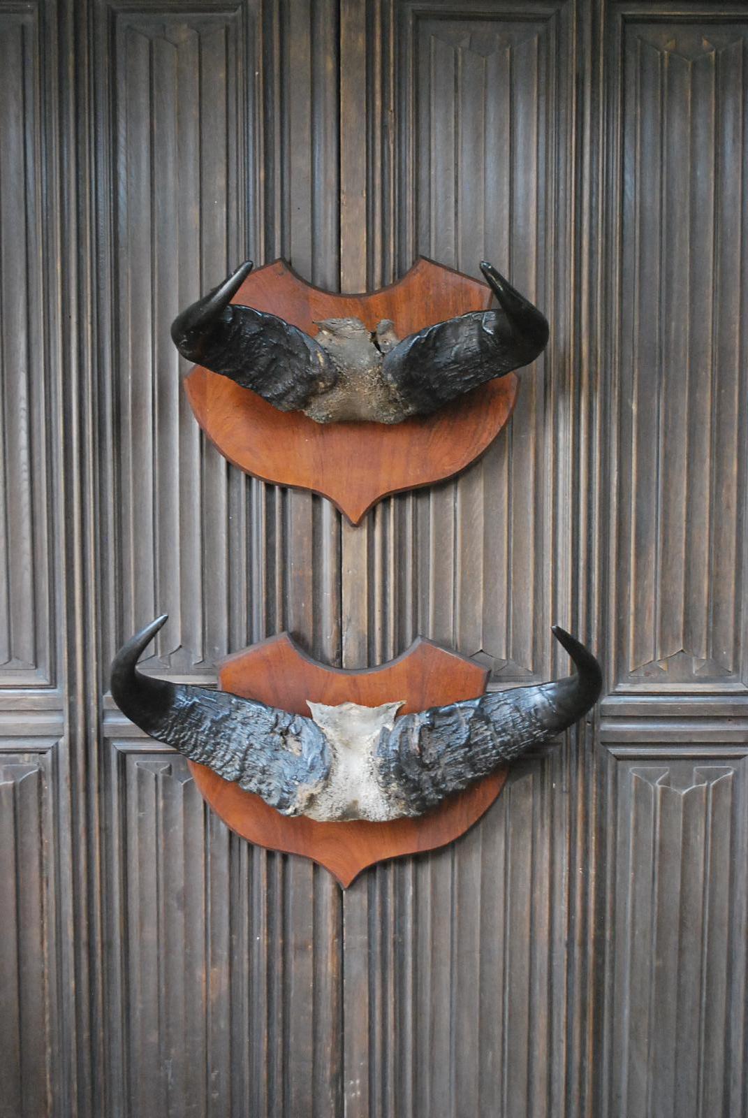 Pair of Cape Buffalo Horn Trophies on Shields
