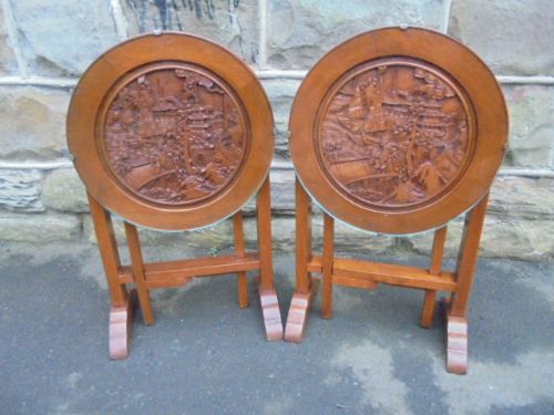 Pair of Carved Camphor Folding Tables / Coffee Tables c.1920