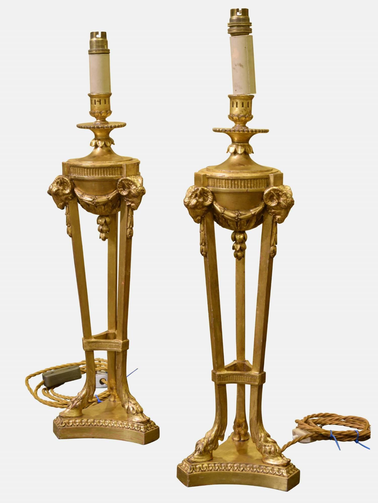 Pair of Carved Giltwood 'Athenienne' Candlestick Lamps