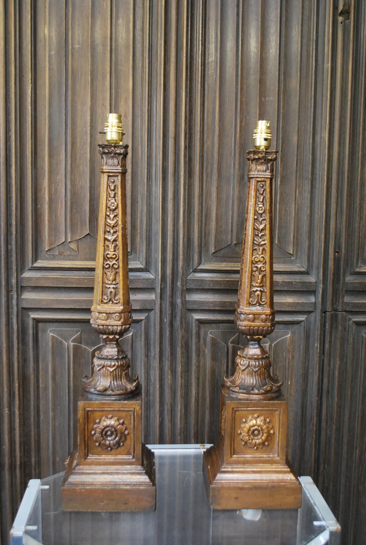 Pair of Carved Giltwood Lamps