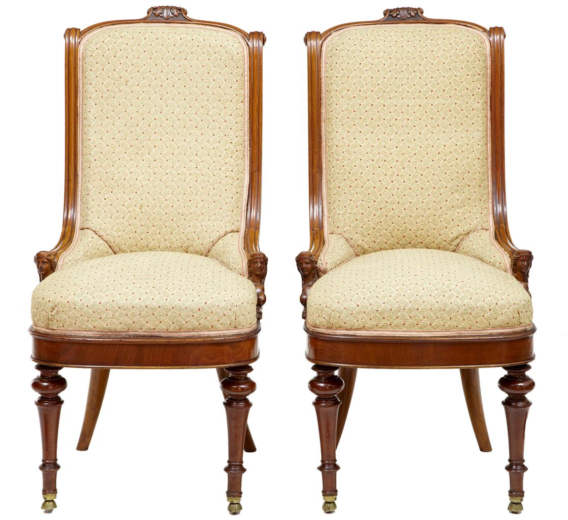 Pair of Carved Mahogany Empire Influenced Nursing Chairs c.1850 (1 of 1)