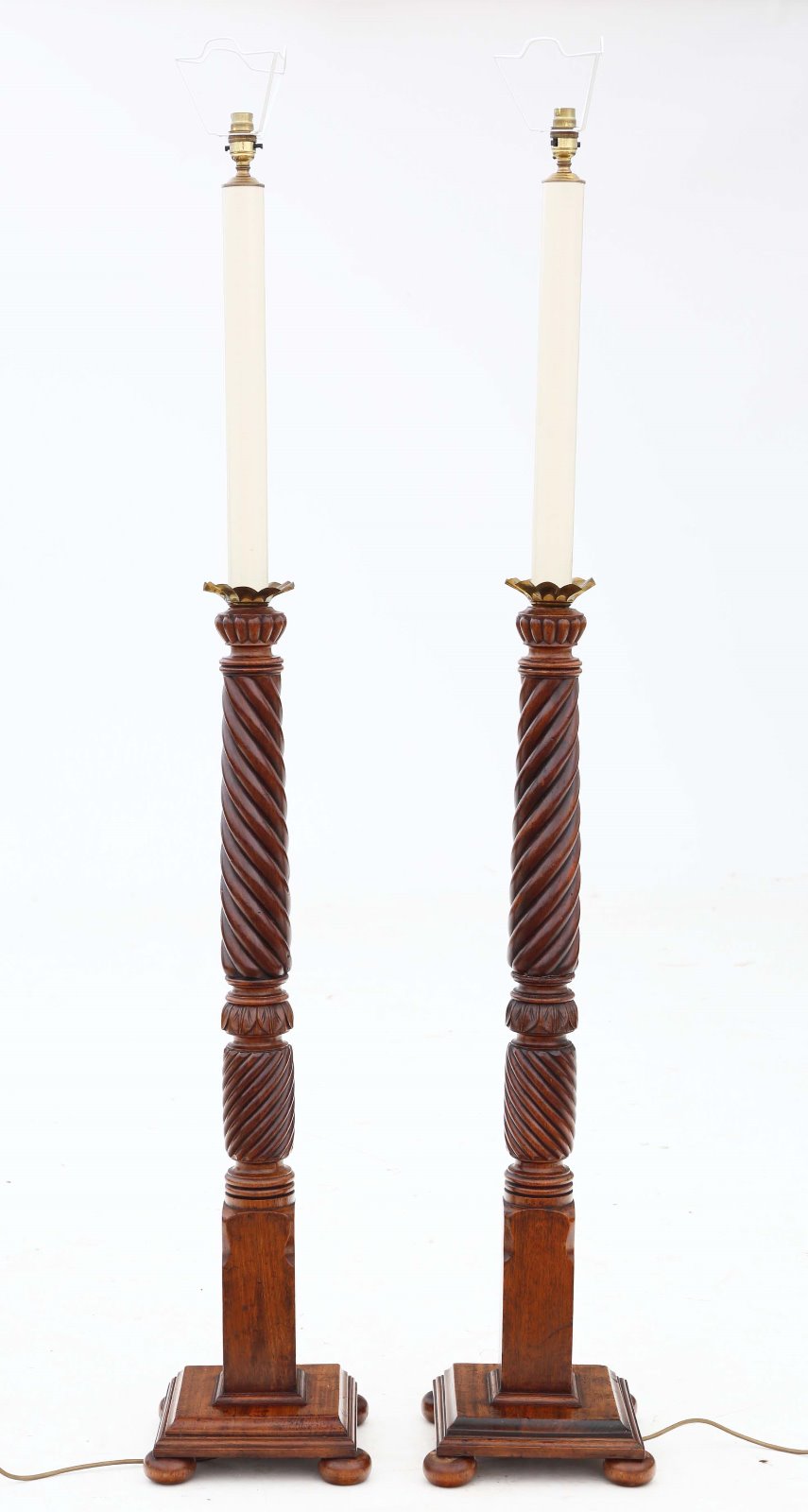 Pair of Carved Mahogany Standard Reading Lamps 19th Century (1 of 1)