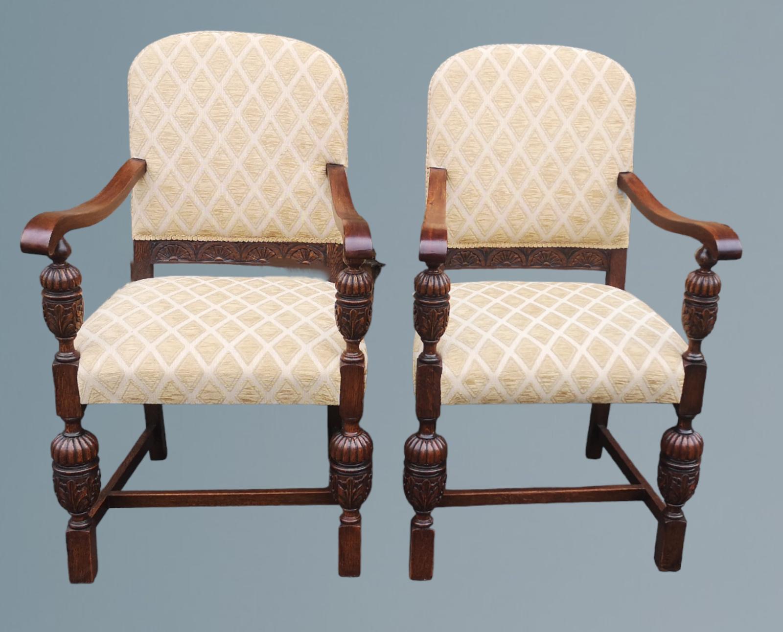 Pair of Carved Oak Arm Chairs (1 of 13)