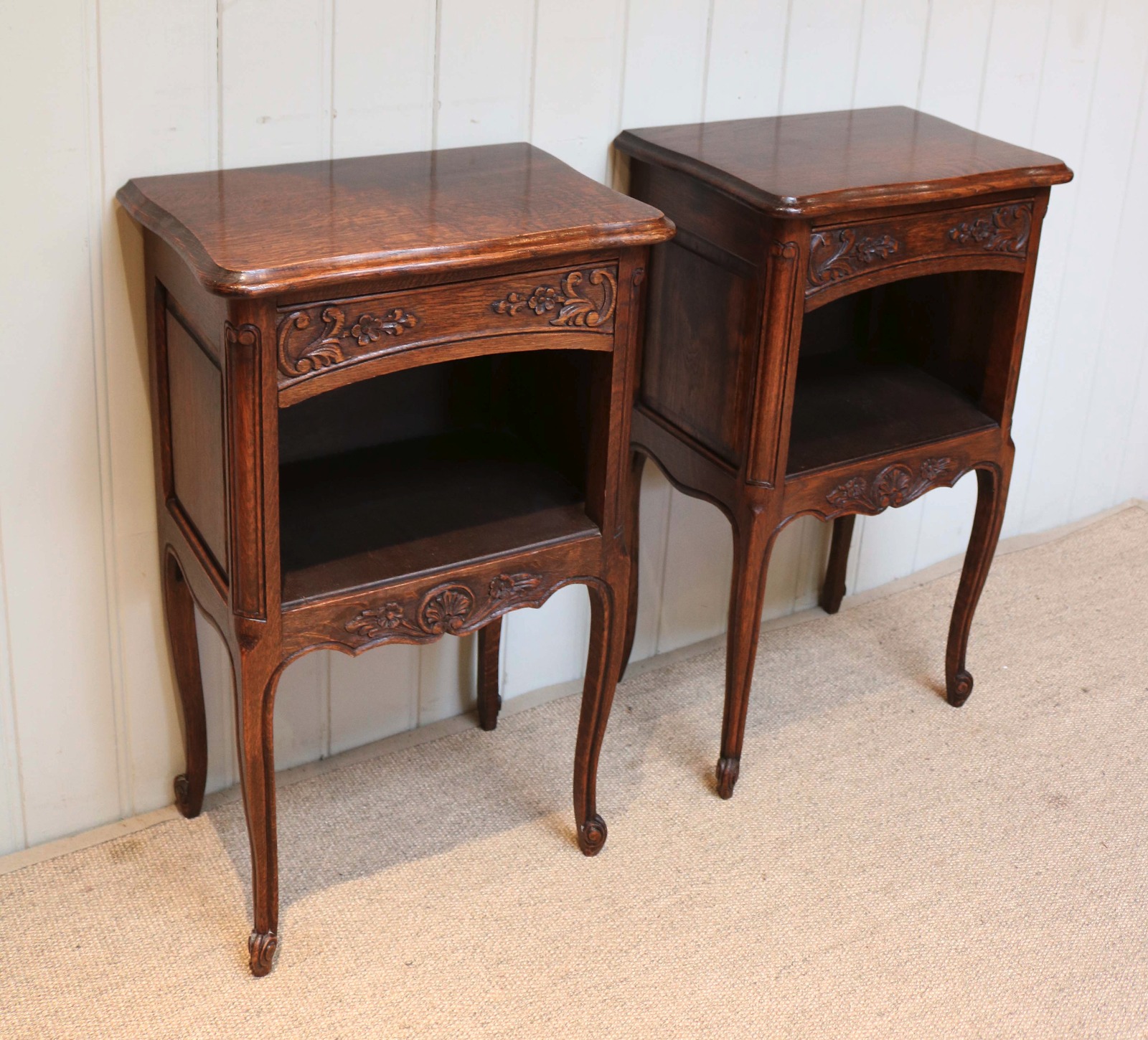 Pair of Carved Oak Bedside Tables c.1910