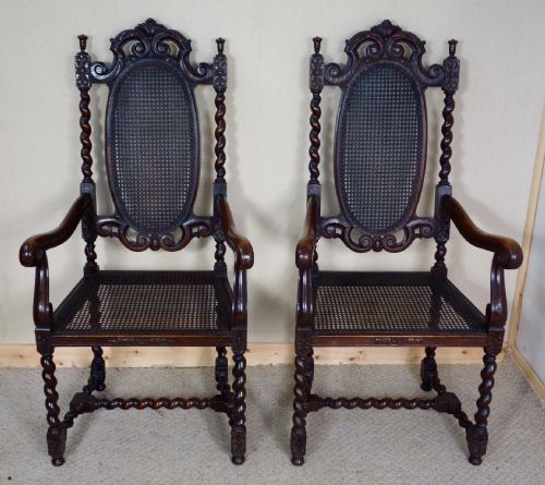 Pair of Carved Oak Cane Armchairs (1 of 1)