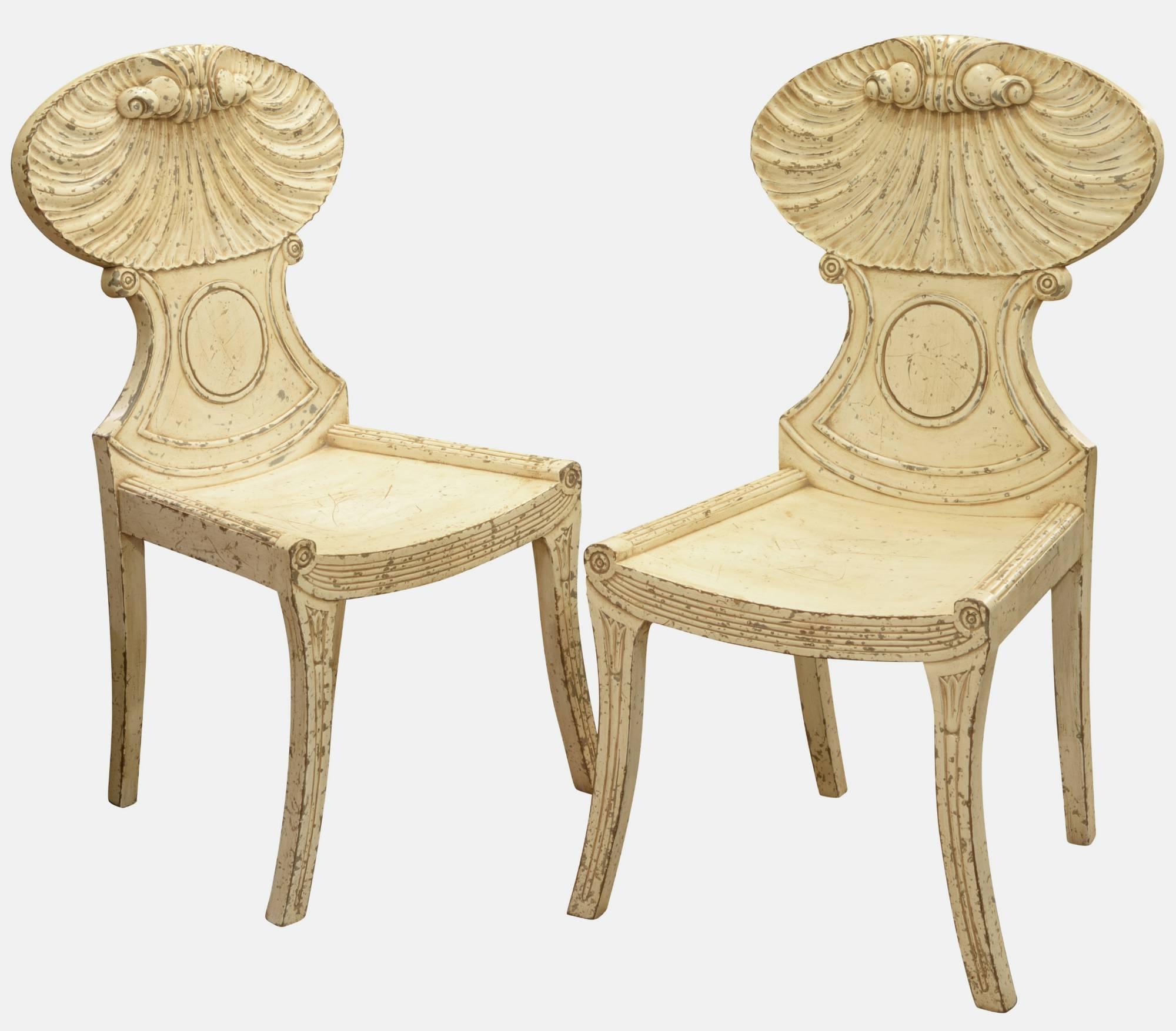 Pair of Carved Painted Hall Chairs (1 of 1)