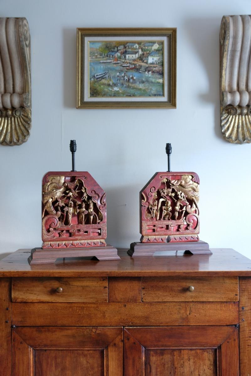 Pair of Carved Polychrome Anglo Indian Table Lamps