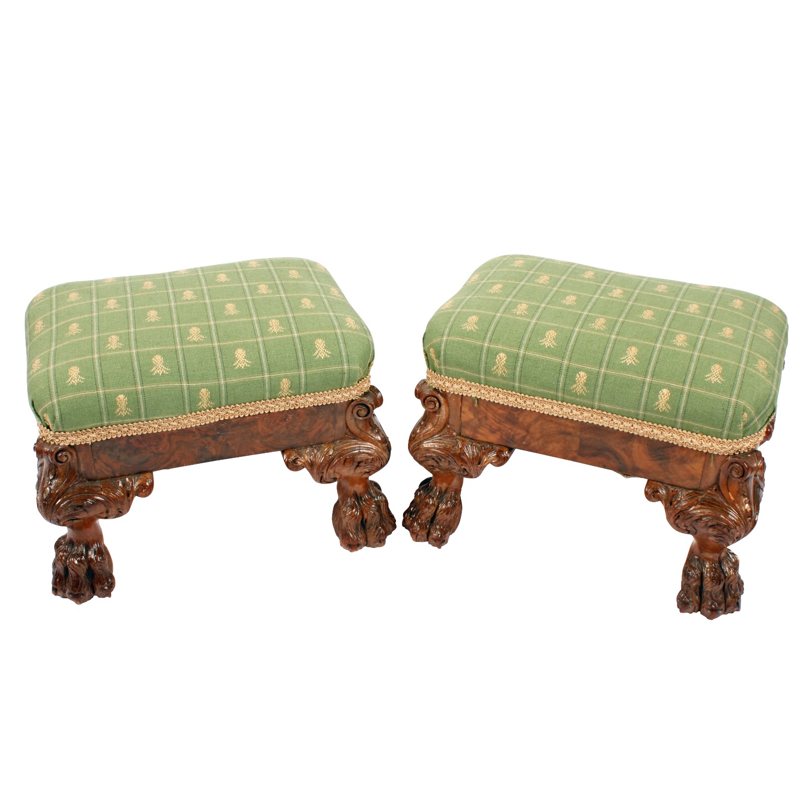 Pair of Carved Walnut & Burr Walnut Foot Stools c.1920 (1 of 1)