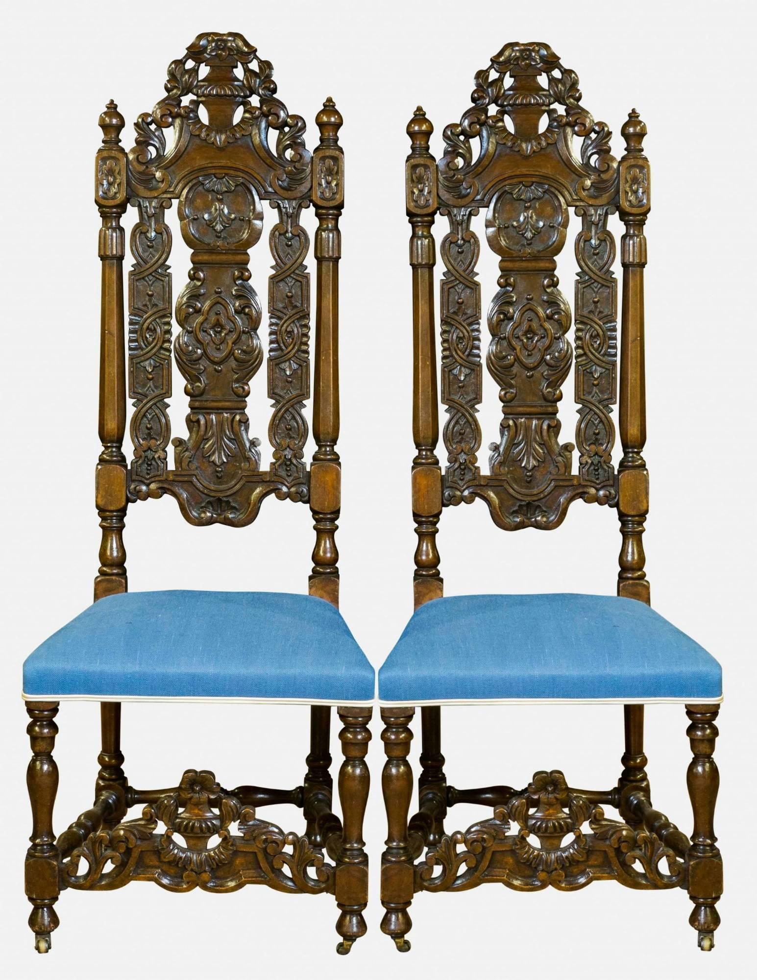 Pair of Carved Walnut High Back Chairs (1 of 1)