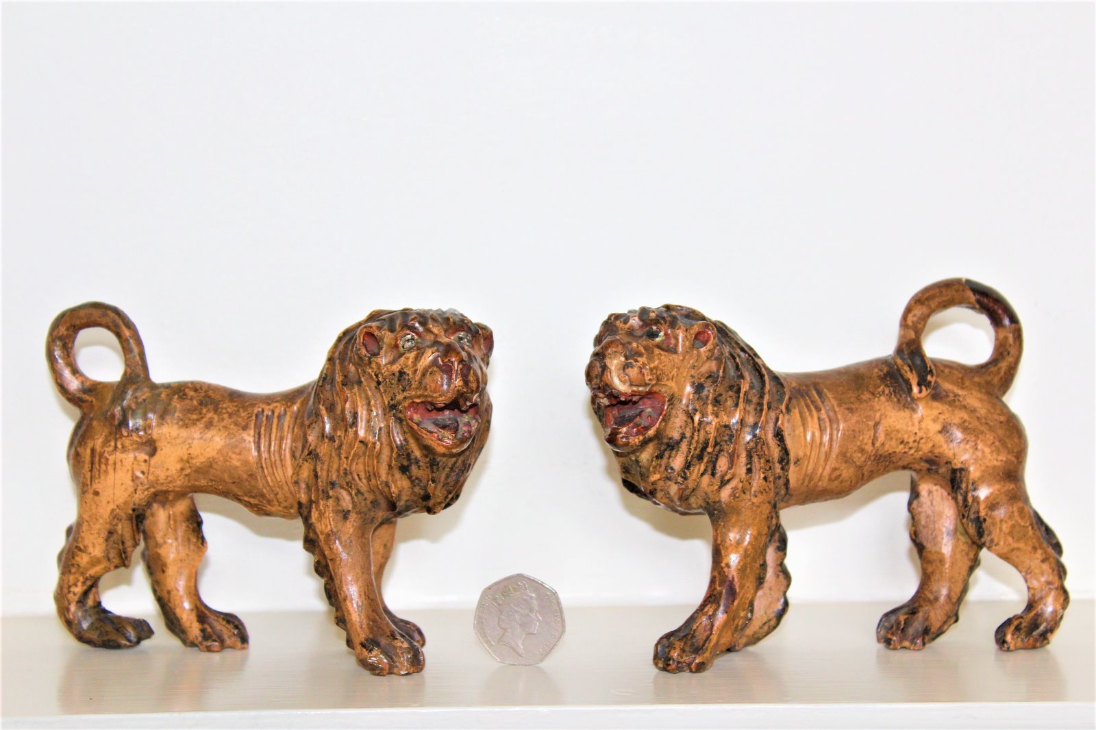 Pair of Carved Wood & Polychromed Lions European c.1820 to 1850