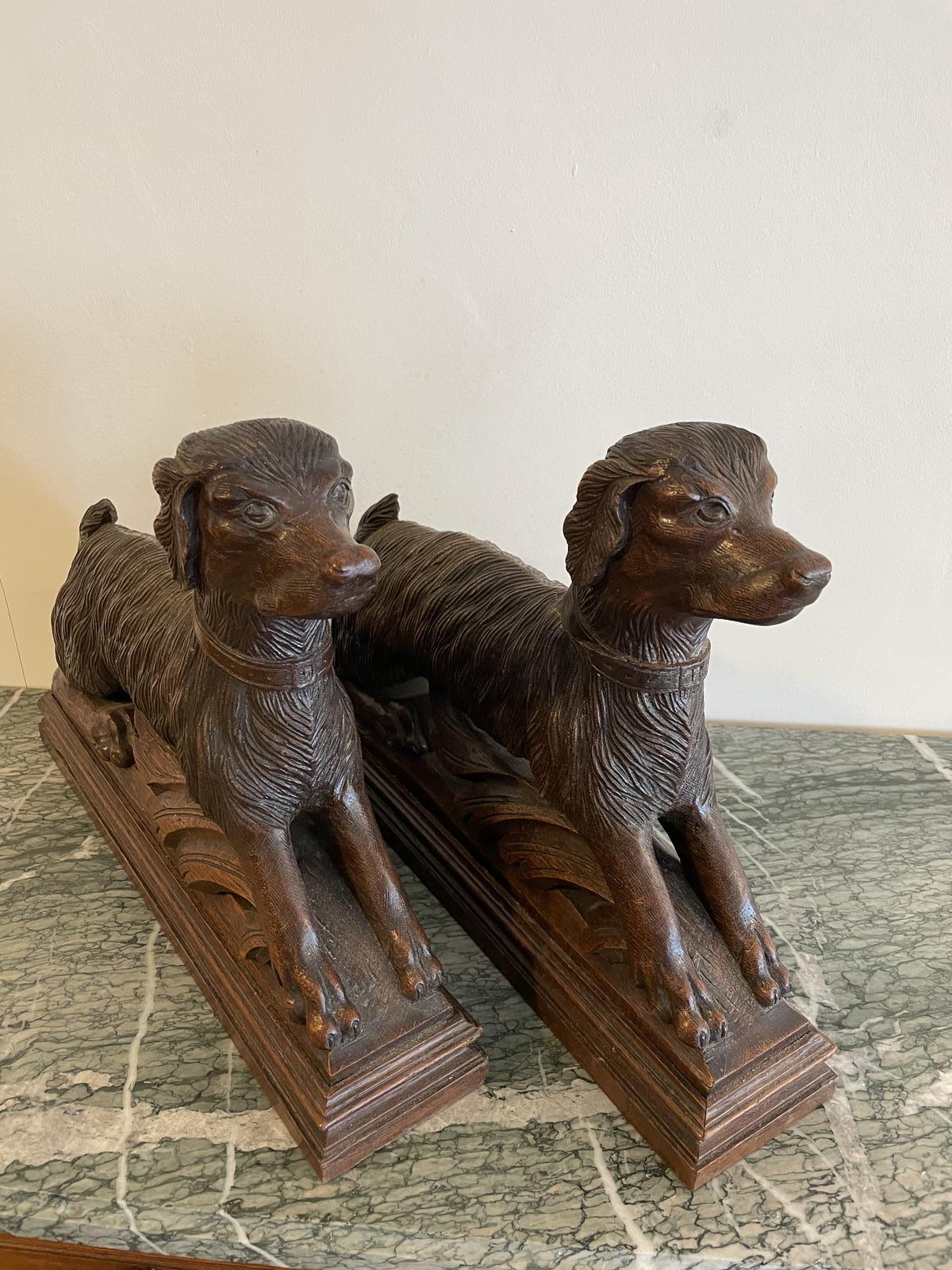 Pair of Carved Wooden Spaniels