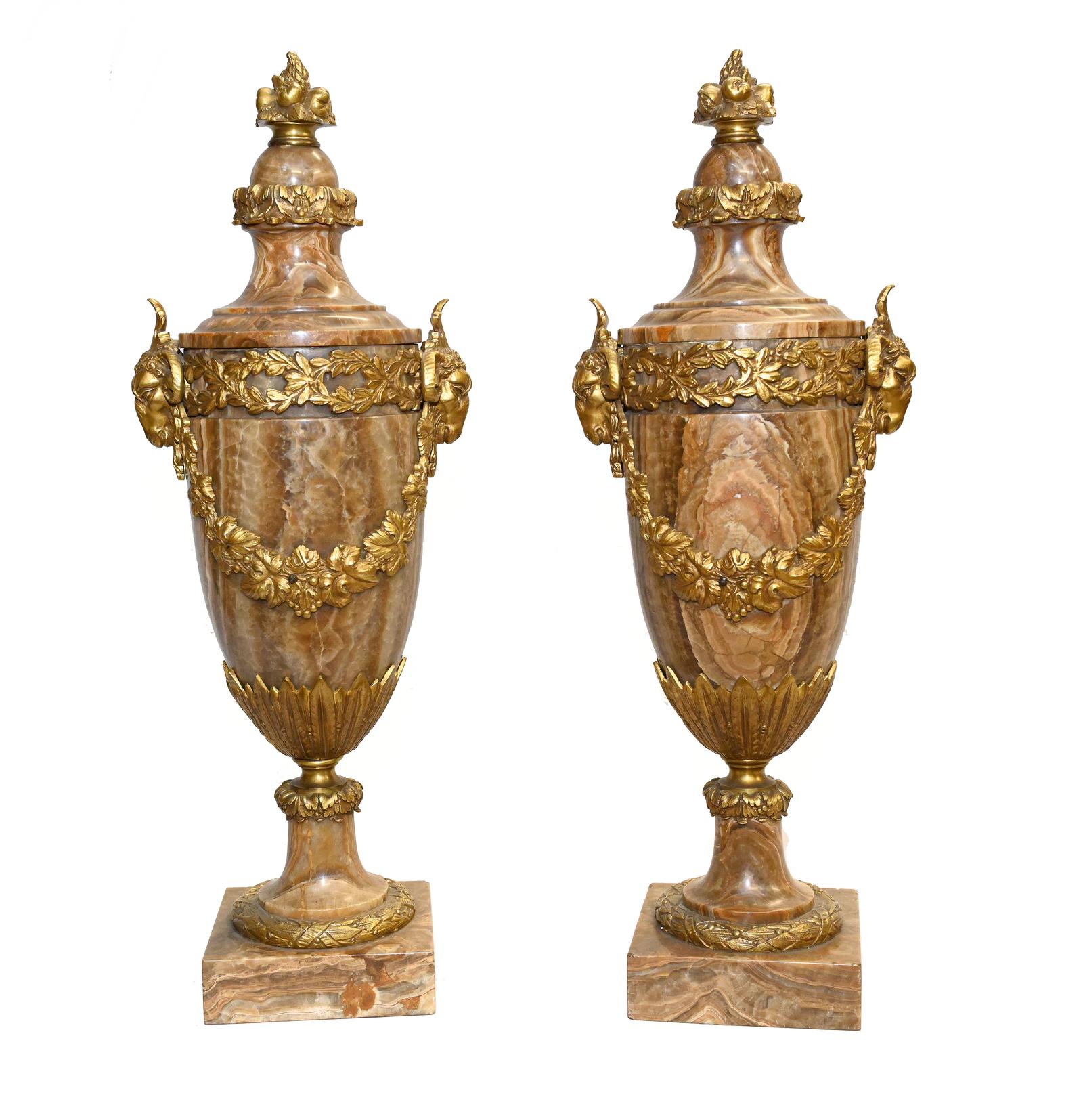 Pair of Cassolettes Urns French Antique Marble Ormolu Vases c.1885