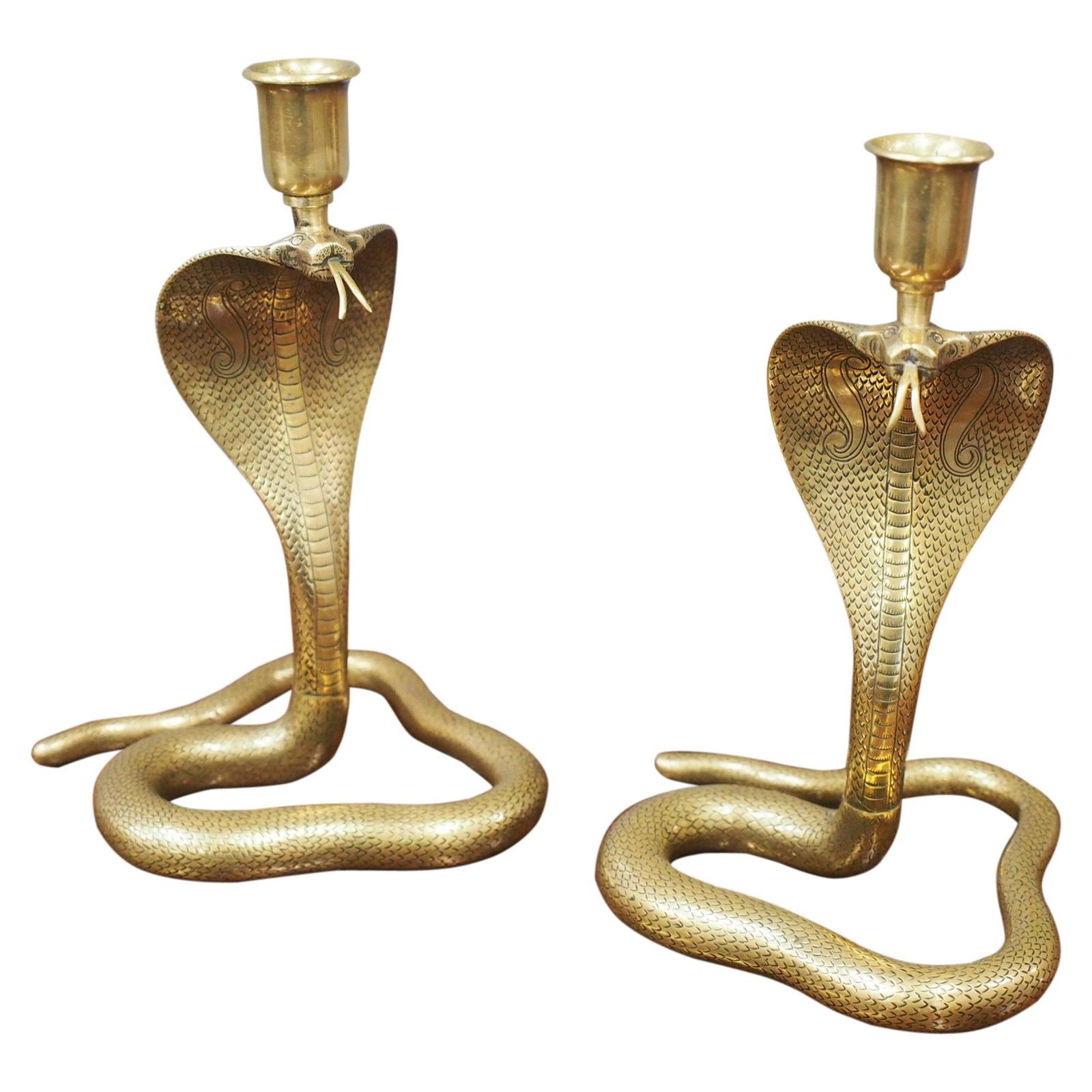 Pair of Cast Brass Cobra Design Candlesticks (1 of 11)