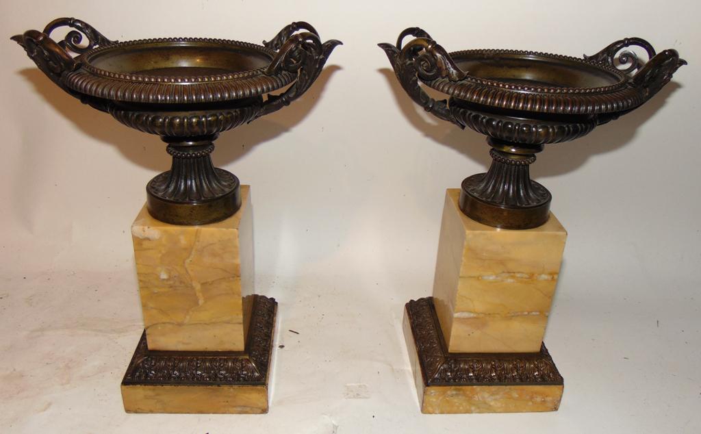 Pair of Cast Bronze & Marble Tazza