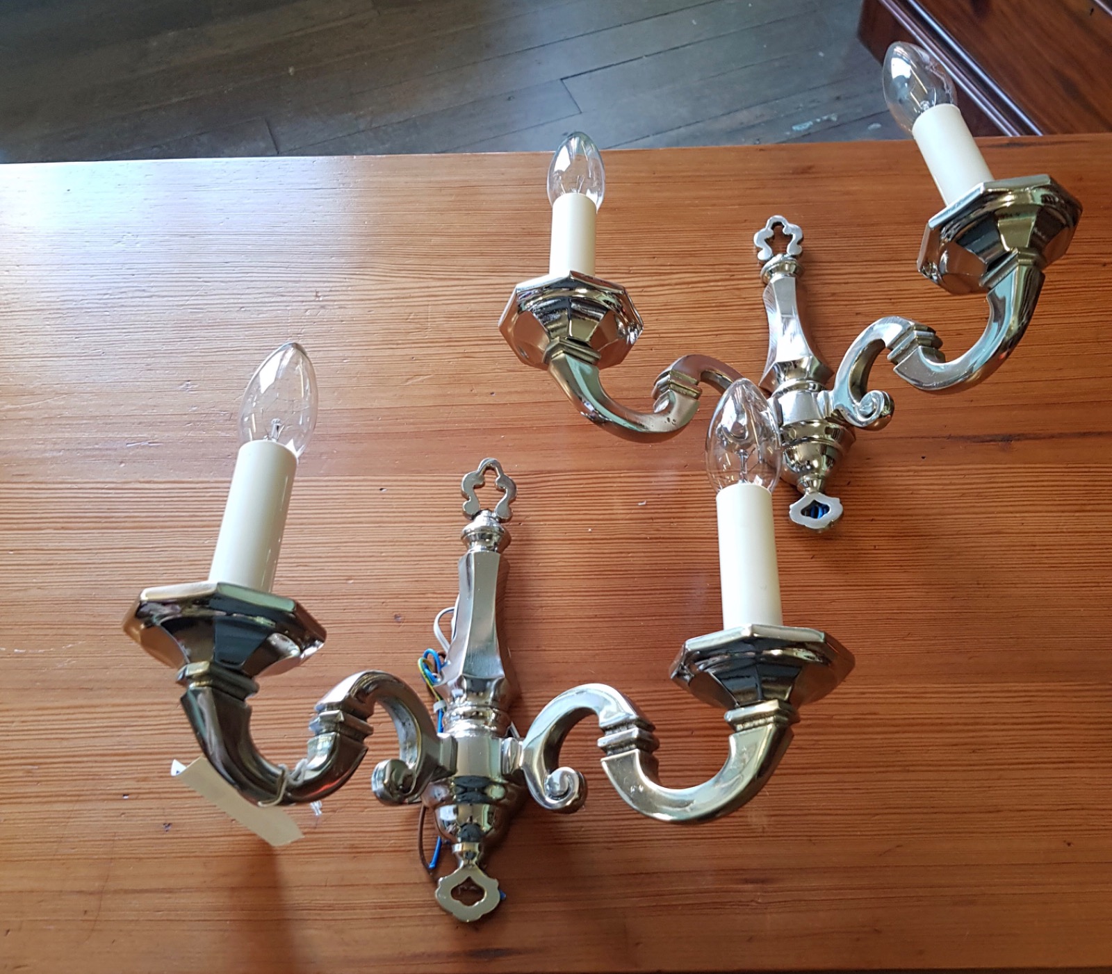 Pair of Cast Nickel Silver Plated Wall Sconces c.1920