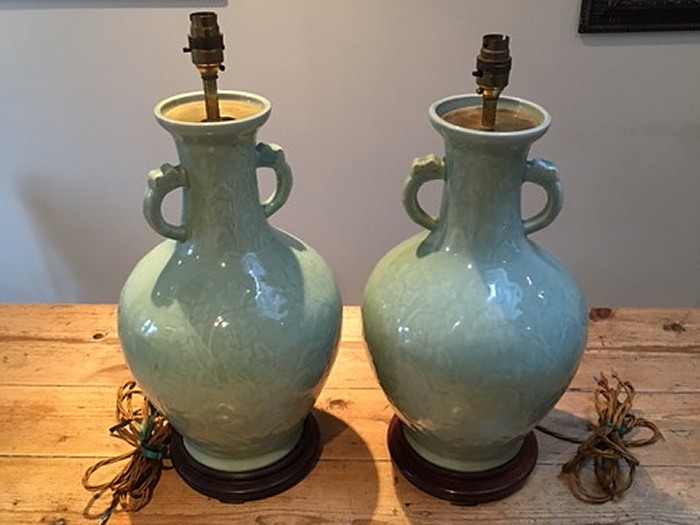 Pair of Celadon Glaze Ceramic Chinese Lamps (1 of 1)