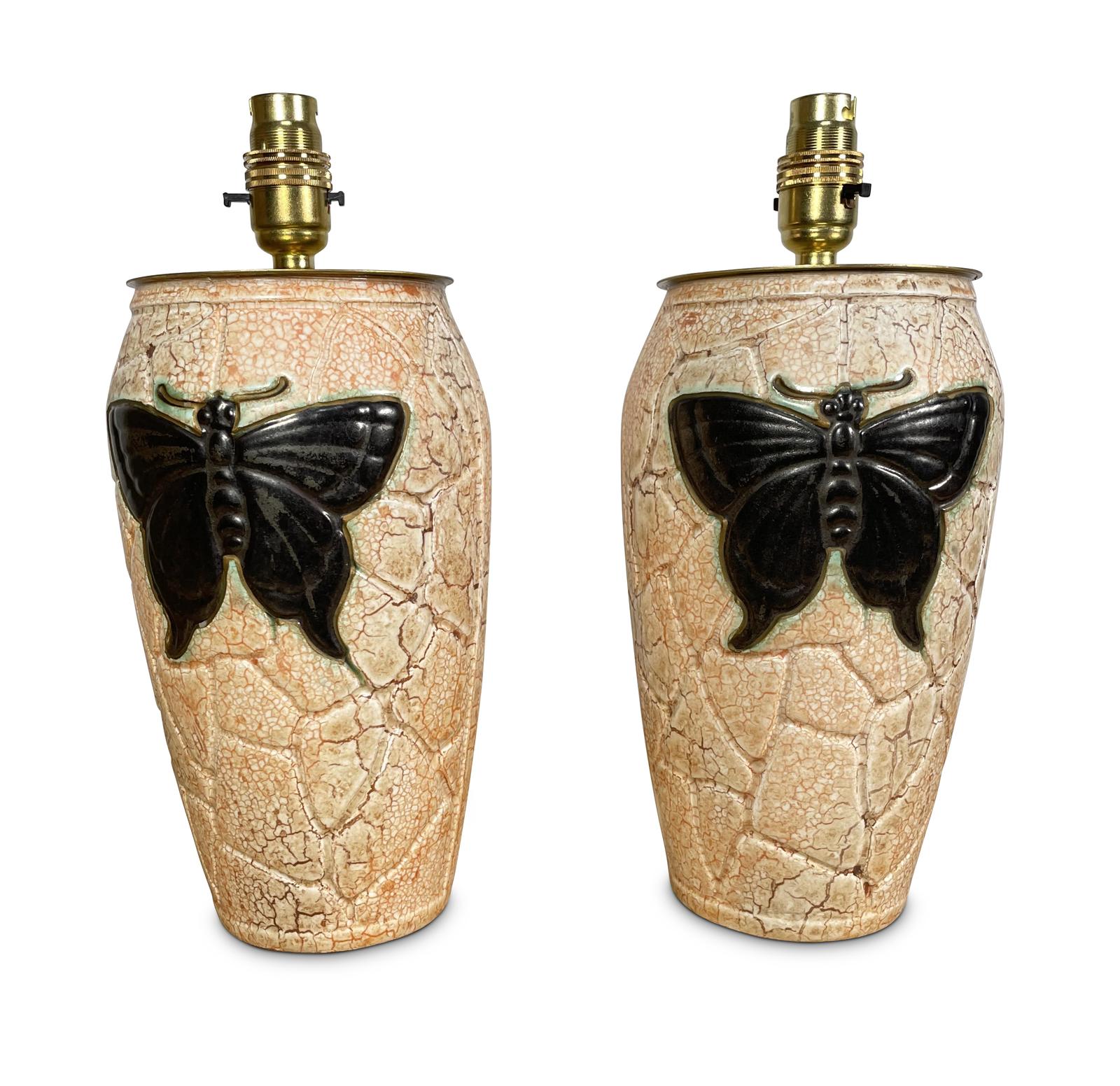 Pair of Ceramic Vase Table Lamps with Butterflies