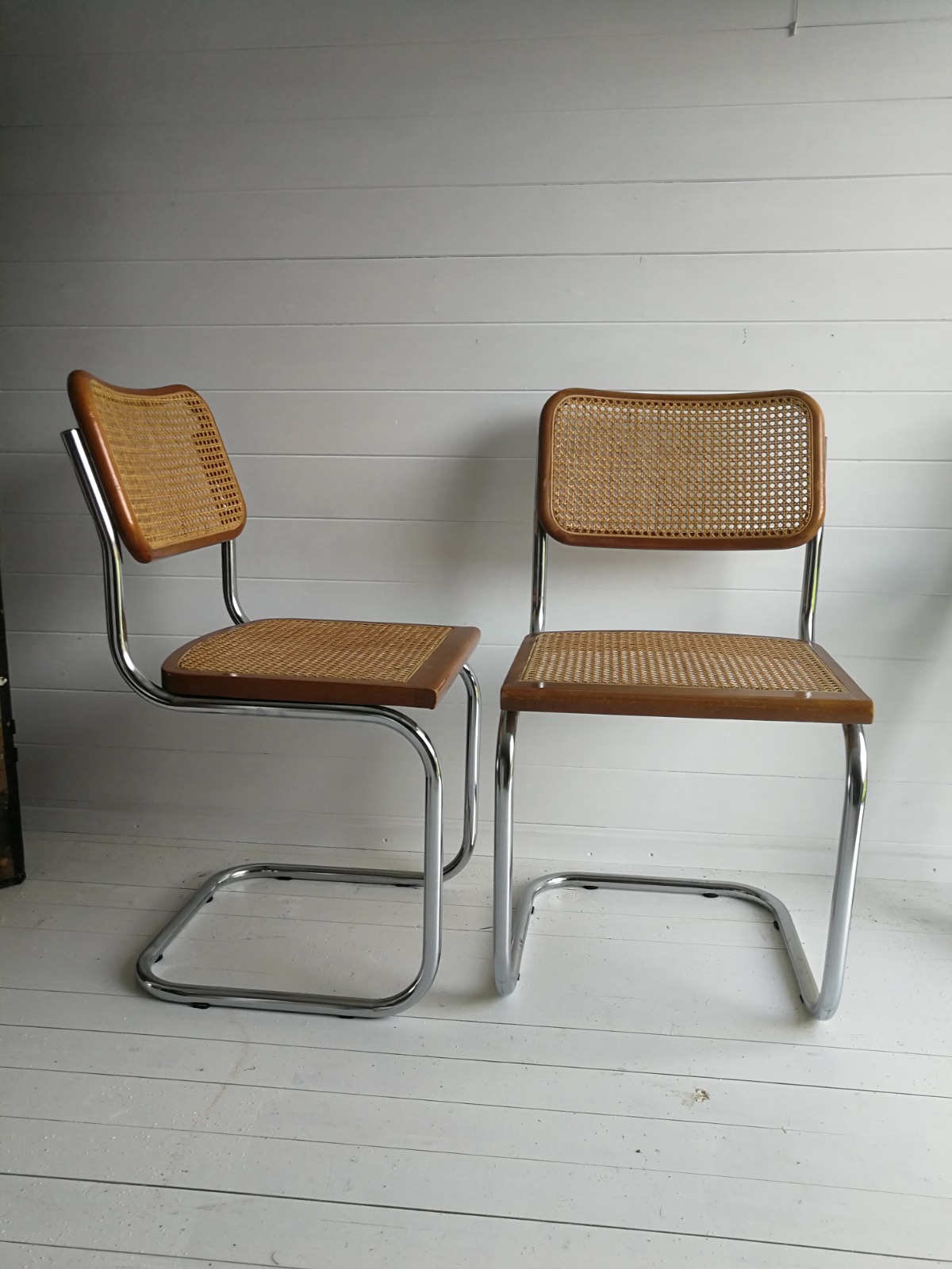 Pair of Cesca Style Chairs Marcel Breuer B32 Cane & Steel 1970s