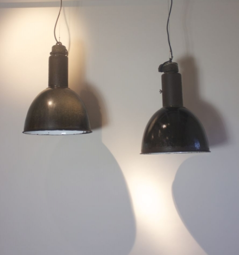 Pair of Charcoal Grey Enamel Industrial Lights / Lamps c.1940