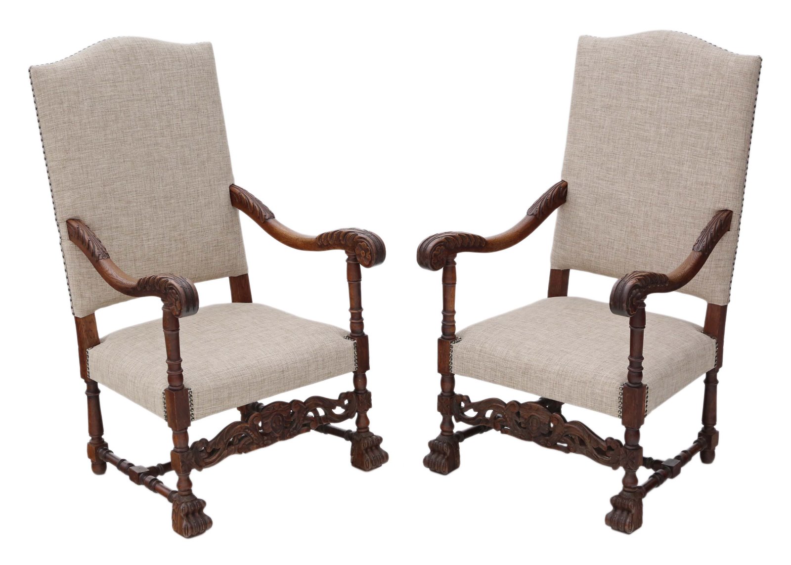 Pair of Charles II Revival Oak Armchairs c.1900