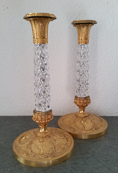 Pair of Charles X Ormolu & Cut-Crystal Candlesticks