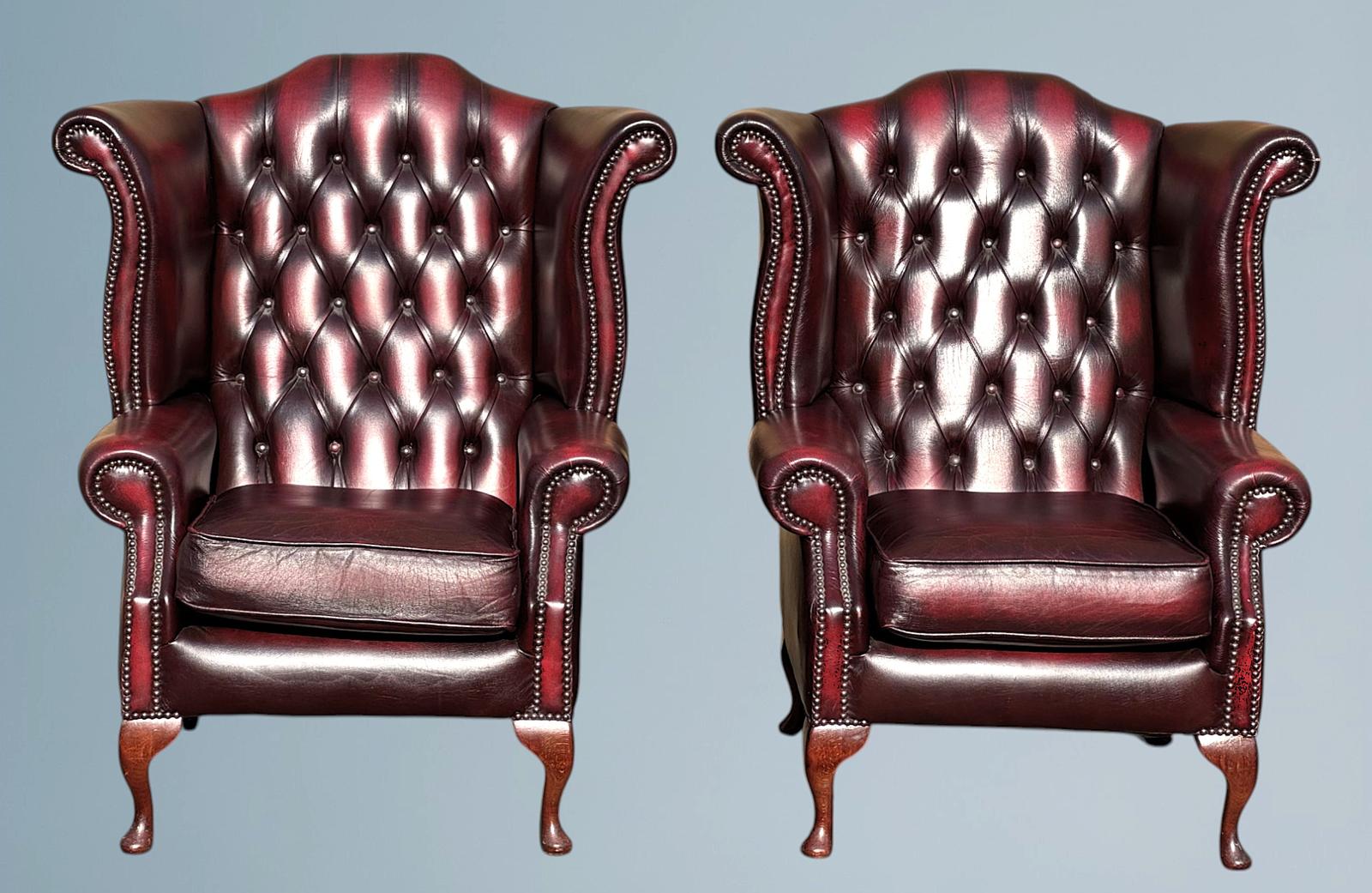 Pair of Chesterfield High Back Queen Anne Armchairs (1 of 13)