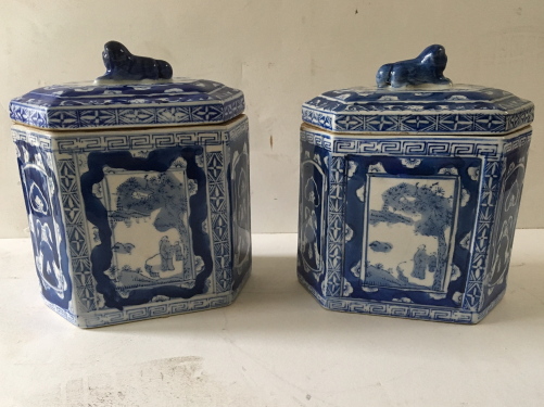 Pair of Chinese Blue & White Canisters (1 of 1)