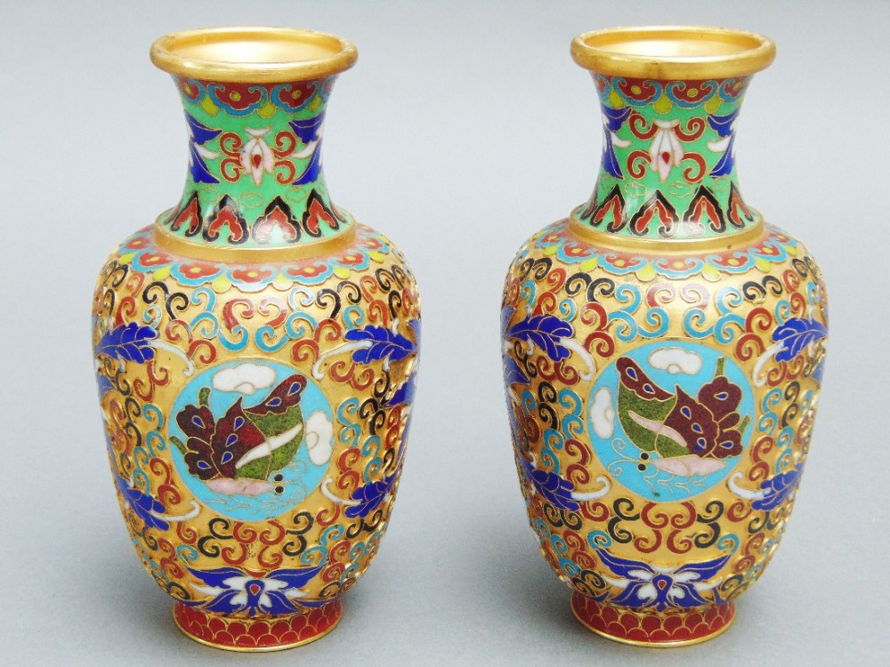 Pair of Chinese Cloisonne Vases Early 20th Century